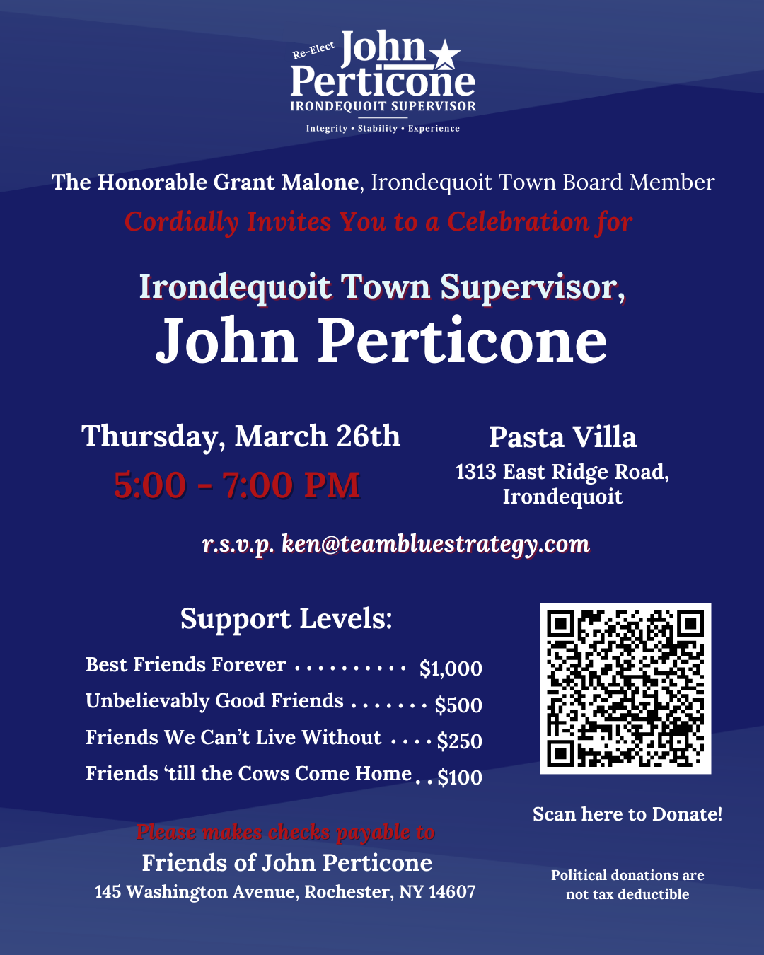 Join us for a Celebration for Irondequoit Town Supervisor, John Perticone!